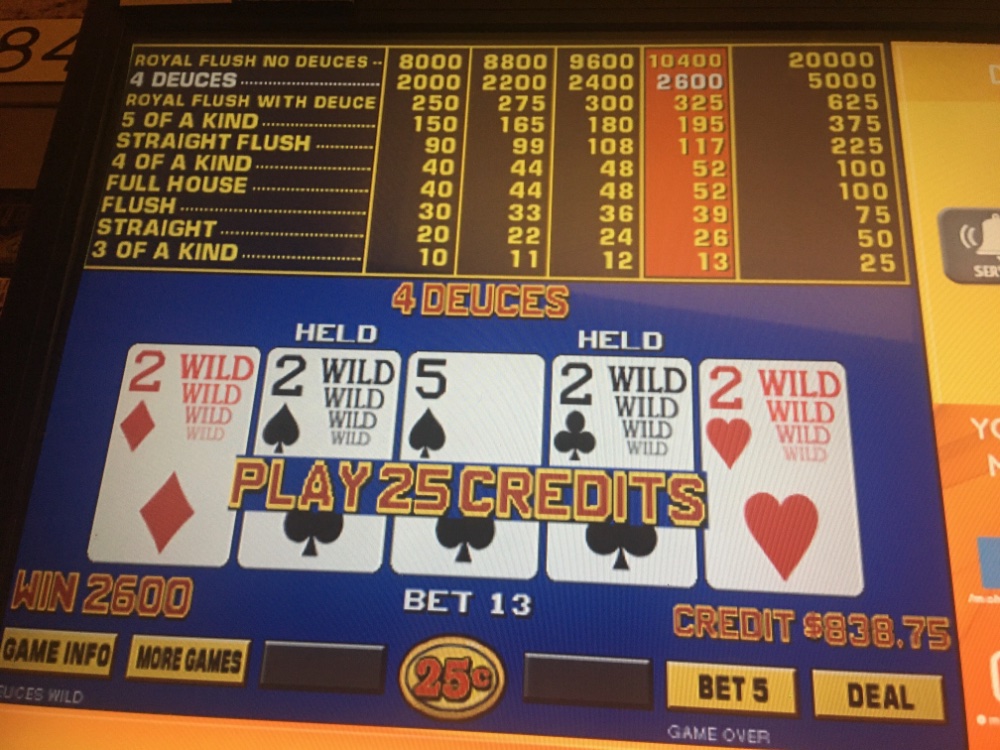 Back from Bizarro. I got a bit too aggressive in my play last night. This time I couldn’t hit on Joker Kings. No Royals either. I switched to Deuces and managed about 50 percent damage control. Half a loaf is better than none I guess.