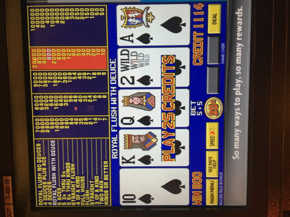 That’s for sure. Especially on these games. I am better off waiting for a net loss of about 500 quarters before I up my bet at all. These games are fun and fast, but can wipe you out in a hurry. It has been several million hands now since a dealt Royal on one of them. That is in the back of my mind and it is getting hard to not let it affect my amounts bet per hand. I guess it has been 4 or five 649,000 cycles since I have hit one.