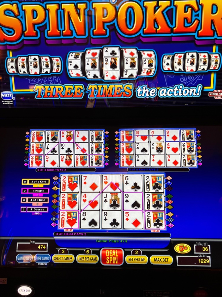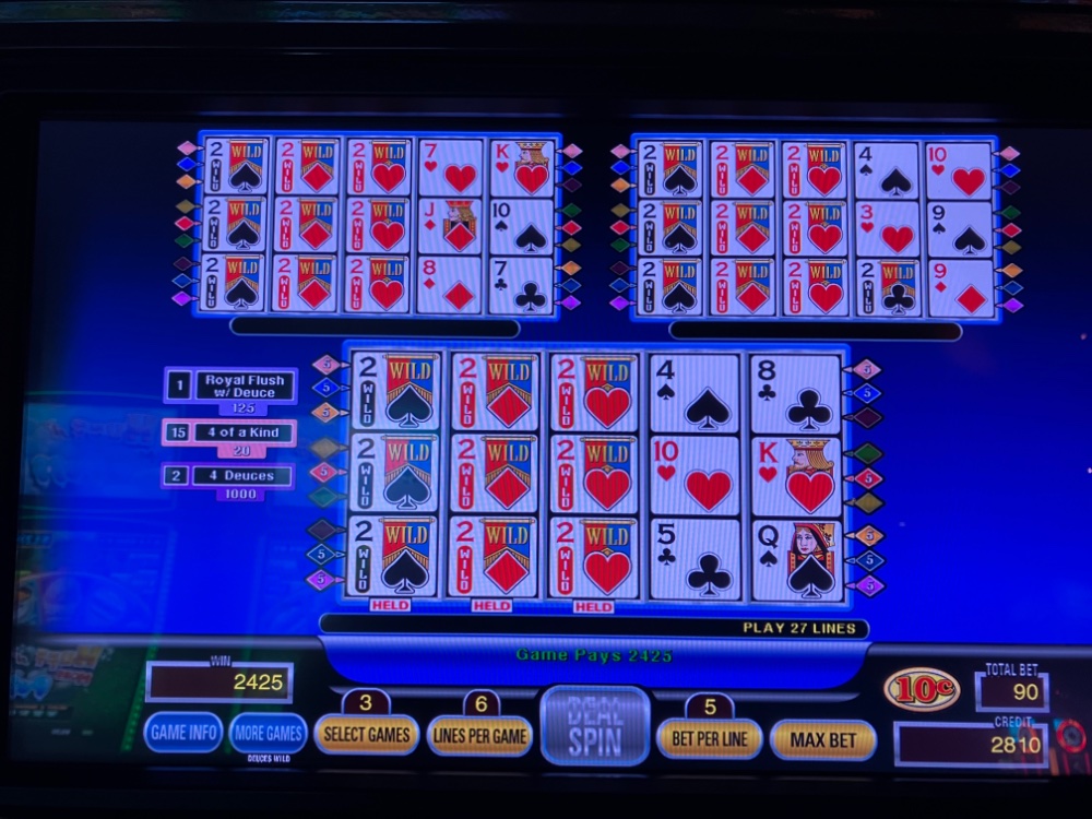 Thanks. Still at the casino, but all done playing. Will be heading home after some rest and light lunch later. The trip ended up well so far. I started out with 20 in free play and was able to get that up to over 100 on Triple Spin Poker Deuces Wild. An awful pay table around 96 percent, but the Clone pulled me through even without hitting a Royal. I upped me bet to dimes after it looked like the way I was playing was working OK. My bets did get pretty high, but with so many lines, the variance wasn’t too bad. I ended up just around 300 bucks. No complaints. The weather up was terrible. The ride home looks to be a bit better. Next trip is planned for tomorrow with the Mrs. I plan to stay with low denomination rather than hit the ATM. Everyone stay safe and well also. Some pics are attached. I finished up on dimes.