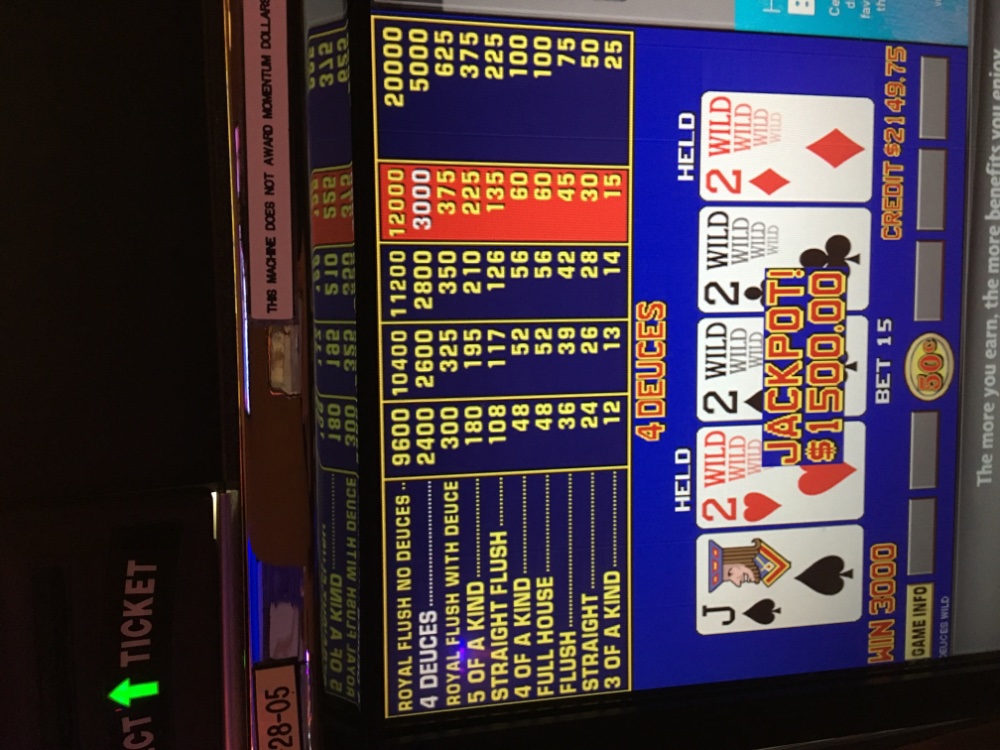 Holy cow. Back at mohegan. Playing less than an hour caught the deuces again 950 bucks. Machine was cold was getting a bit nervous, but the clone saved me again.