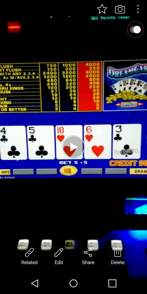 Last night while playing $1 9/6 TDB on a seemingly brand-new 5 Star machine, I was dealt 4C,5C,10H,6H,DC. The 3C was awarded as my "Dream" Card. Obviously, pairing up the 4 is a much better play. This situation was a new one for me.