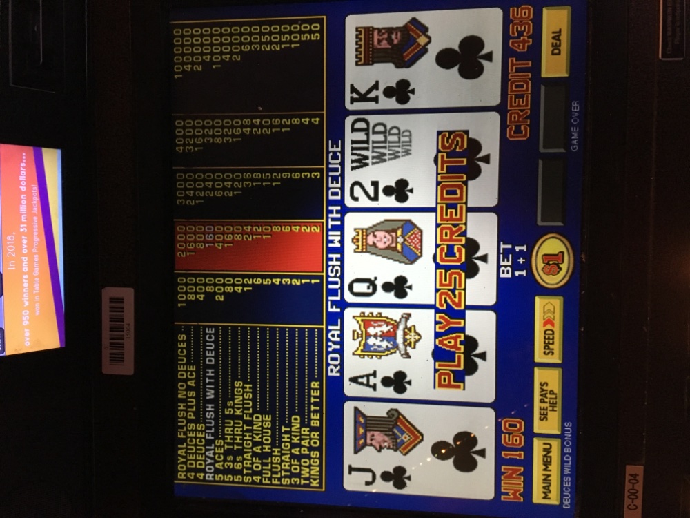 I love the DDS game, but it is very streaky and there aren't many of them left. A couple of years ago on this same machine, I was dealt a Royal good for 18k even. This game pays you 5k for a dealt royal with 5 quarters bet. Of course you double that after seeing the deuces.