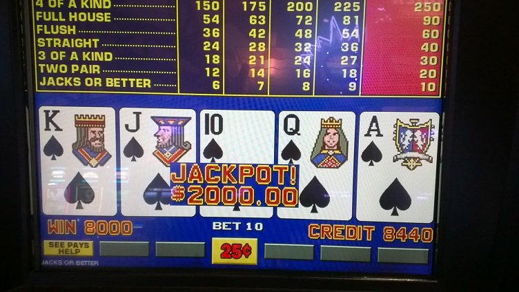 Congrats. A very nice rare hit. I have had several redraws over the years, but am way down percentage wise on normal deal and draw Royals. I have had several dealt Royals, but am now behind percentage wise by a mile on those too. My last one was a home run that I posted about here a few years ago. 18k on a quarter DDS Deuces wild game. At the time I was using a clone of Martingale and I think I was betting 18 quarters. Again congrats on that hit. Many times at least for me, we are almost daydreaming when these hit as we have just tossed 5 junk cards and are hoping for just a push on the redraw. The only reason I have hit the above is hands is I play between 1 and 2 million hands a year. They have not made me a lifetime winner. Not even close.