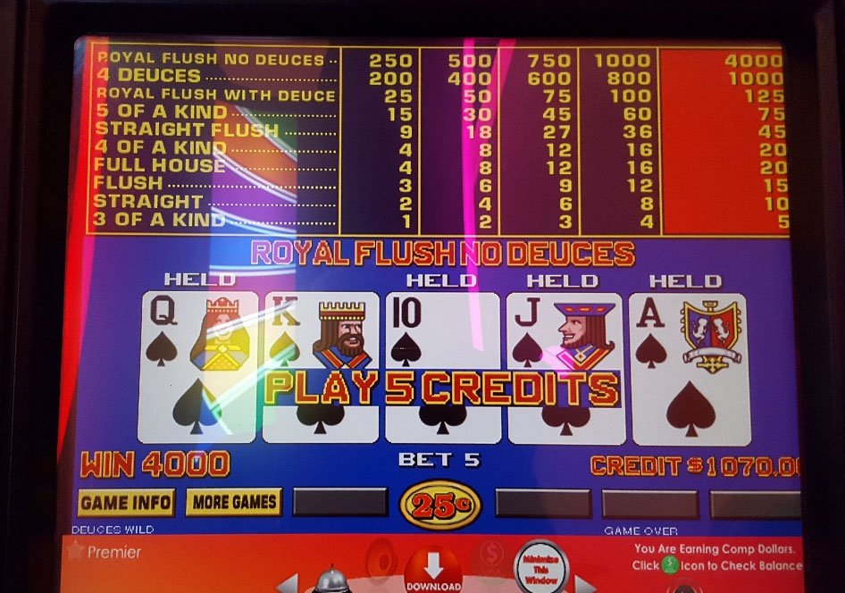 I hit a royal flush and two quad deuces and came home up $800. My wife lost $400 so I covered her losses. Watch for the giant guitar on TV. You might see us waving out one of the windows.