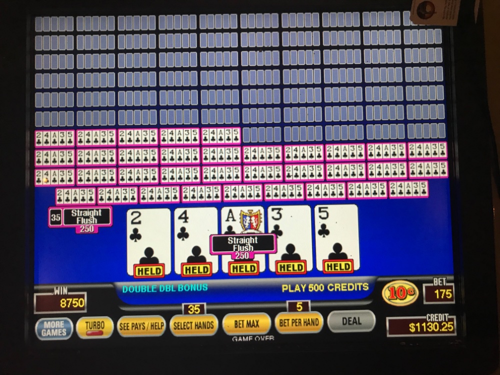 Since I play mainly DW/DWB 99.5% of the time I don’t see as many natural SF as most people which is why I jokingly stated they seems harder than Royals. FAA my apology on saying I rarely catch a straight flush. So I decided to play a non-Deuces game (see reason I'll post topic "Golden Nugget" trip 7/16" and I caught a SF - 35 of them to be exact. The second picture also has the cash out ticket with date/time. Sorry about the darkness around the ticket.