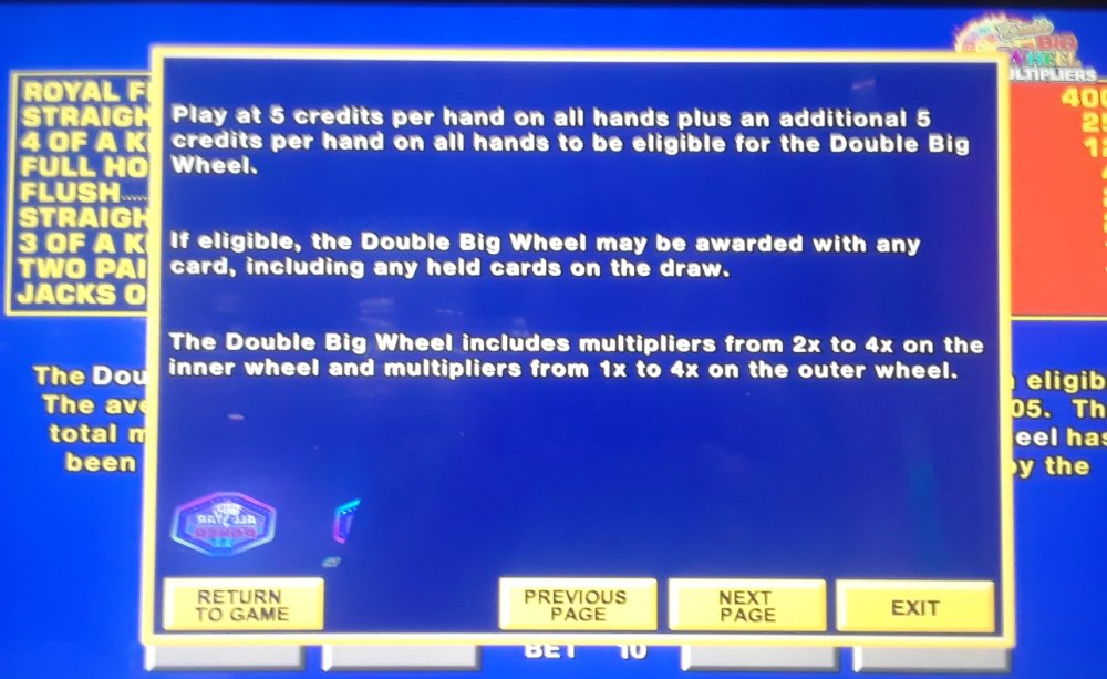 You sure that's a law? I've never noticed it on the books. But generally it's followed in practice. Also shocked SP had this. I thought they stopped getting new gimmick games years ago. Paytables there?rsactuary wrote: ↑Sat Aug 10, 2019 9:28 amI played this at South Point and quite liked it. Yes, the Nevada gaming laws say that an extra feature must keep total return the same or better than just the typical VP return, so something is amiss in the numbers above. Clearly the wheels are weighted in some way.