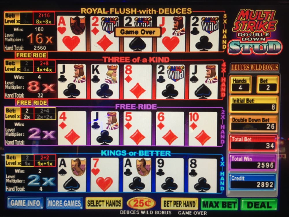 I hit this today at Foxwoods. A wacky and tough game. I promptly quit and it returned my lost bankroll from last nights session st Mohegan Sun. We stayed there as we had one of our last remaining comp rooms booked months ago. We had dinner and watched an exciting WNBA game. The Ct Sun won. Right before we left Mohegah, I was playing next to a regular who also holds a Soar card there. His room offers were pulled too. However, as retribution he took them for 5k today. He plays single line ddb. He always bets 15 quarters. He hit 4 aces with a 2. And 5 minutes later hit 4 2s with the Ace. I couldn’t believe it and neither could he.