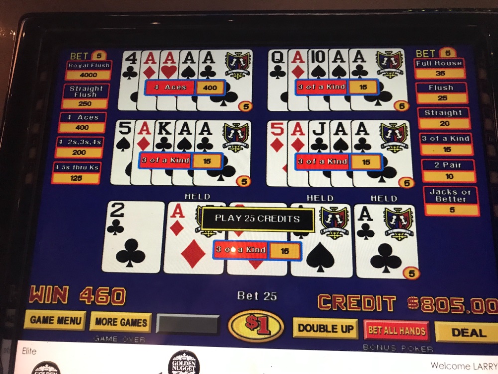 Double our bankroll and continue my assault. My next $200 in goes up to about $500 then downward to around $75. Resetting my timing I work it back to $735. Catch two quads in a few hands and I'm up to $1000 and cash out. Start with $400 and move to $Bonus catch 4 Aces and 4 deuces to over $1,000 again. Cash out. Move to an end All Star and start with $400 again playing Bonus, Jacks, DWB and DW. Down to under an $100 and then slowing down again I catch a Straight Flush twice on $1 and then back up to $700+. Now approaching 2:30 and I go back down and cash out at $200. End the night at 2:55 (3:00 am starts new day. Up $1,500 for the night with 4,700 points played. Can't wait for Friday/Saturday.