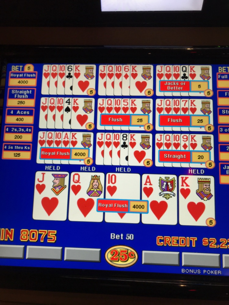 Short side story: Last trip I sat by an older gentleman, probably in his late 80's or early 90's, who suffered from macular degeneration so bad he had to almost lay his face on the screen to see the hands. We got to talking as his kids (or maybe grandkids) came to check on him. He was trying to teach them to play VP. HIs mind was as sharp as ever and he knew his strategies. He told me how much he loved VP as it kept his mind alert. As we talked and Sweet C and I later met his wonderful wife and I asked his background. When he told me I realized I knew of him. He was a retired minister who had started one of the largest Interfaith organizations in the Houston area - our church was a contributor to the group. They told us they tried to come every few months so he could have the pleasure of playing just a few more times until he was completely blind. Just another one of those stories I think about when I think forget how blessed I am in my life. Thanks pastor for the blessing you gave Sweet C and me. It means a lot to us.