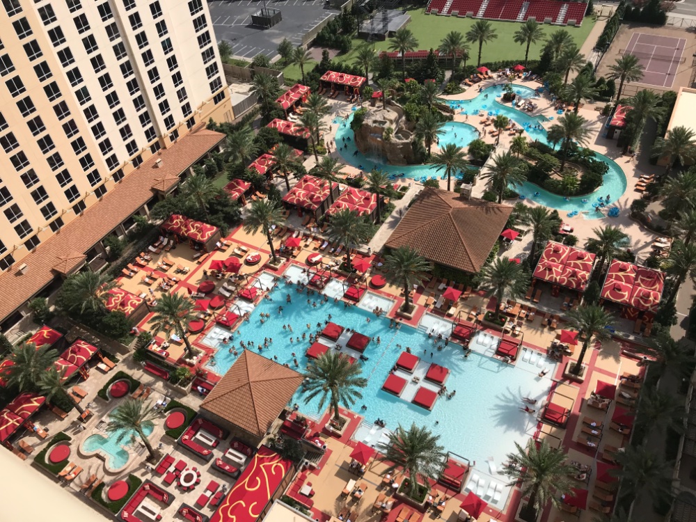 Boy, do I know that feeling. Like you we love the upper floors. Generally quieter. We are also fairly lucky enough to get the nice corner suites. Our preferred tower has balconies on every room so we open the doors and bring in fresh air several times a day. This pic is from the 21st balcony just below the presidential suites just a few minutes after the pools opened up.