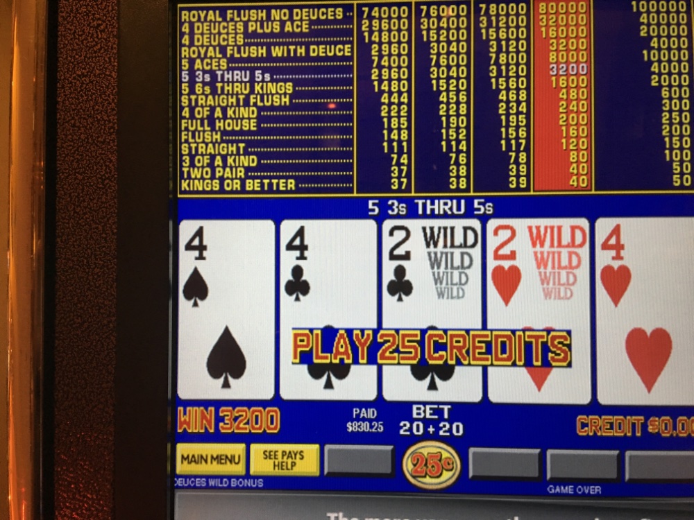 The 5 4’s came in first abd as you can see I was in trouble as my bet was up to 20. The dealt quad deuces cane 20 minutes after the 5 fours so my bet was much lower.