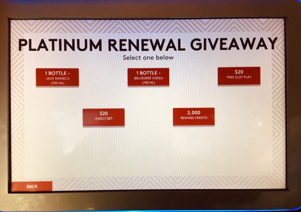 Platinum Status week. I will choose either a bottle of Belvedere vodka or Jack Daniels tomorrow. I should of course limit my play (loss) to have a trip worth toasting. I want to get toasted, not my BR. Jacks is more affordable than other whiskeys, especially Scottish and Irish variants that have strict ageing requirements. But I won't look a gift horse in the mouth. If I hit a seven win at craps, I will celebrate with Old No. 7.