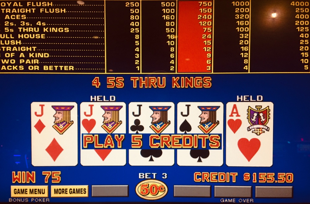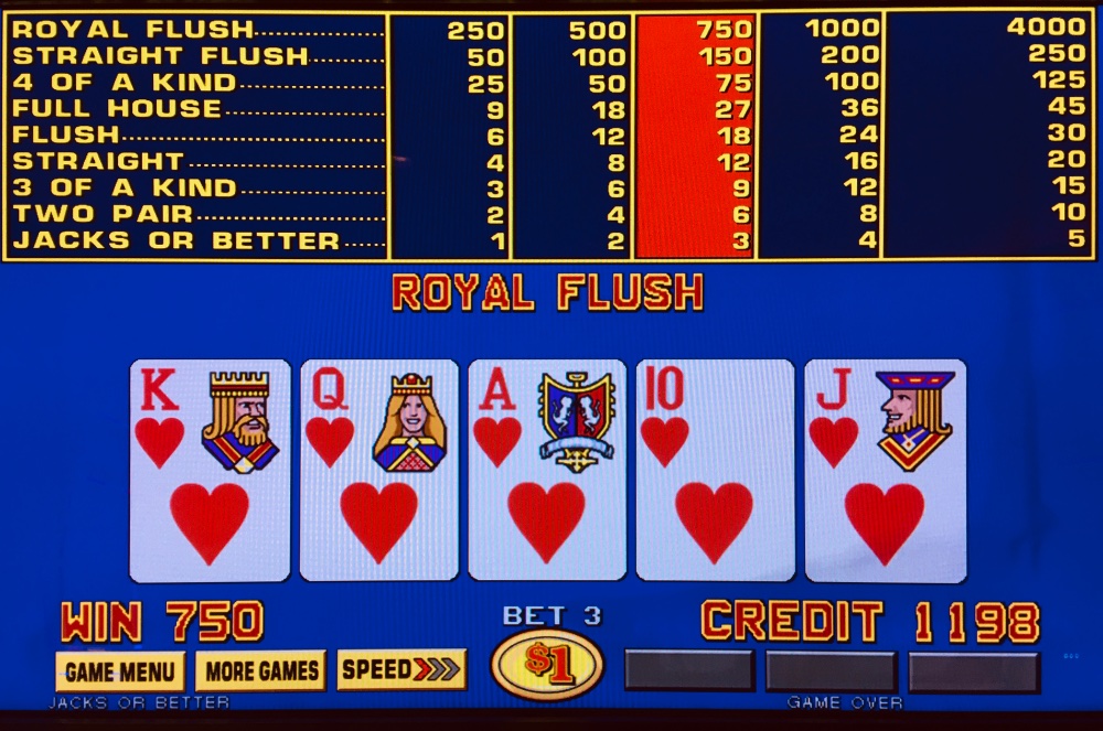 Twenty three minutes later, I was dealt a $750 Royal Flush on the redeal!