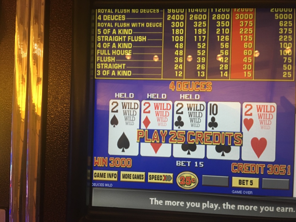 Had a nice rest shower etc. and started all over. Just very lucky and hit the deuces again.