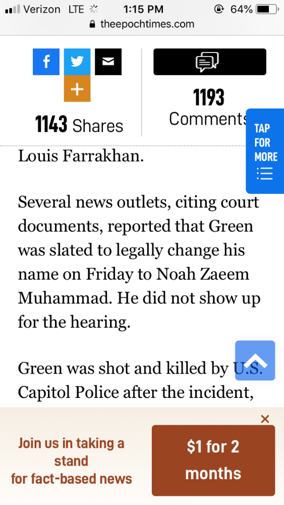 My first post reported exactly what was known at the time I wrote it. I was listening to the radio and wrote exactly what the announcer said. When I got to a television a few minutes later, they( Fox News) were still reporting the Capitol was locked down and shots had been fired.