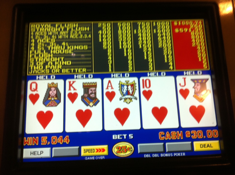 About twenty years ago, I owned a Broadway Poker machine that paid out 65%. This guy had been pounding the machine for a long time, playing $5-$20 a spin. He finally hits four of a kind on a $10 bet and cashes out around $400. Bartender pays him and tries to give him a quarter to clear the machine but he is too busy so the bartender does it himself. and of course he hits a one coin royal. In three years, we had one other Royal. On that one the woman was playing $1, bought the crowded bar a round of drinks, tipped the bartender $100 and pretty much left broke.