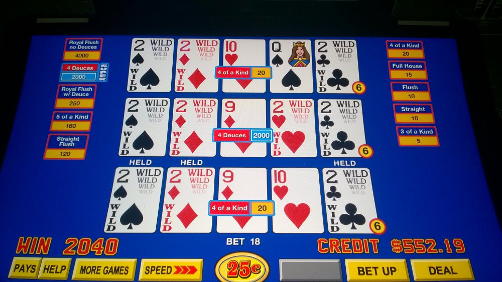Not sure about this super game think I made to right play, had 5 eights held the 3 deuces and it pays off, anyone on the % pay back on this game?