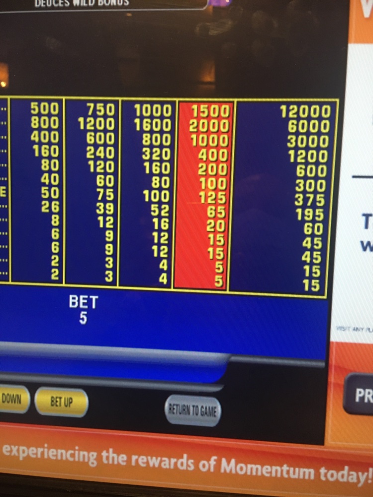 I have been playing the same dollar machine at Mohegan Sun for years. It is the machine that not only paid 800 for bet one for the Royal on the spin poker game, it is the same one that was shut down for Covid and only recently went back on line. I was able to get nearly a 99 percent return on it with a single dollar bet on the Bonus Deuces Wild game.