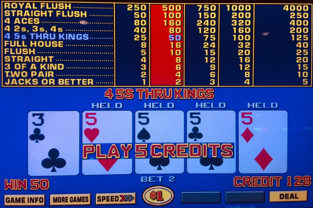 Was just ball parking your playing time at about 3 hours. In that time hitting 7 quads and a straight flush one of which was the better paying low number on BP. Just reinforces to me how important Royals are in those games. Unless one hits and runs early on, the end result after hours of play is almost always negative without a Royal. On quadless days, I have given up as much as 25 percent of coin in on JOB. If I remember, and it has been a while, Bob Dancer has too.