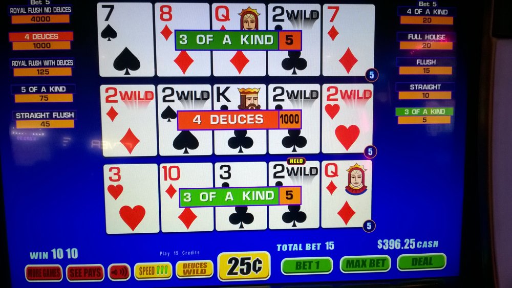 First day playing muti hand, just burned out on single hand. Had a few hits in 3 hrs play on triple play. This is the best pay table we have 98.9% Deuces.