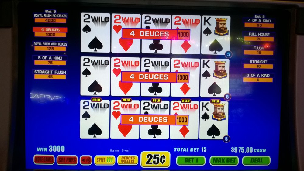 Some really nice hits. Deuces is my game. The machines look wacky to me. Never seen them, but the Deuces look fine.