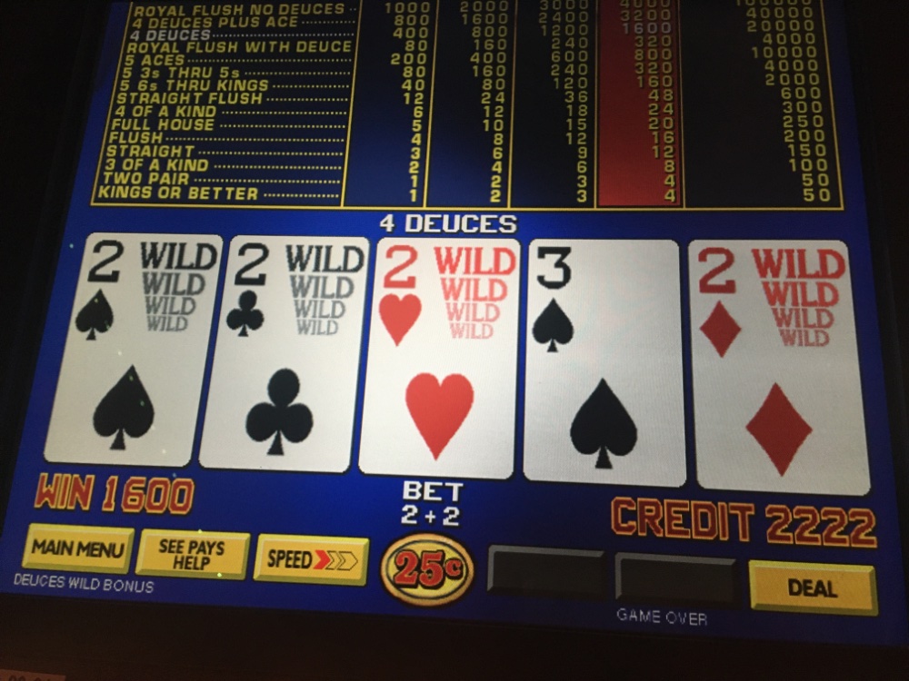Taking a break and had to check in before it got too late. I had some nice hits over 3 hours of play so far. Anyone who plays DDB is going to go nuts when they see the pic of the dealt Aces with the 2. Ugh!!! These are only 97/98 percent machines, but at least they pay correctly for the Royal for bet 1. Hope I don’t give back the 130 I’m ahead later. Solo tonight. The Mrs has early appointments and a girlfriends luncheon tomorrow.