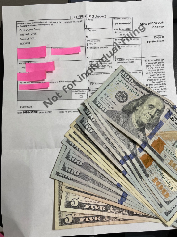 I think the being called for the drawing, while not at your regular casino, especially not having played but a couple of hours prior to earn chances was the most surprising event. I've had my name drawn at Golden Nugget twice in one night for $1,000 each time but I had played for hours prior to the start of drawings which increased my number of entry chances. But, that was not the case this time, and obviously it was a card play activated entry since I didn't scan my card to enter the drawing. Saved our bacon and certainly set us up for our Anniversary trip to Vegas next month. Driving home later, I laughed and told Candy she needed to check if she had Native American ancestors (born in the Midwest) her response was that a great-grandmother on one side was in a picture (circa early 1900's) and looked pure Native American. Time for a DNA check so we can thank her ancestors for our luck at Durant Choctaw Casino!