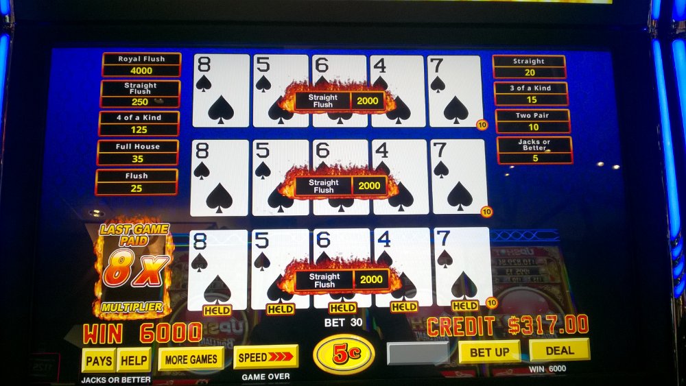 One nice dealt SF on Hot Roll. This game the dice can roll on the deal or draw. On the deal it did not roll, I held the 5 cards and thought no chance the dice will roll, I hit the button and to my surprise they did for an 8 times!
