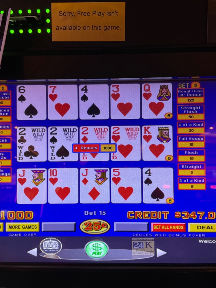 Then when I was about to head up and sitting by her she is dealt 4 Deuces.