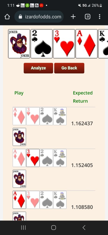 Yeah here is combo 201 for you. The straight flush possibilities have to be very hampered to want to hold Joker only like you expected.dinghy wrote: ↑Sun Mar 26, 2023 10:23 amNow you're just showing off.