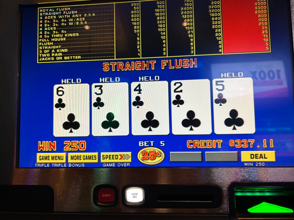 Back to the casino. Very disappointing as this was the dirtiest casino we have ever been in. Machines covered in cigarette ash and same with floor. Never saw anyone cleaning anywhere. Just totally disgusting and we have been in maybe 100 casinos over the years. I talked with people about it and they said when Eldorado bought out Caesars the cut staff to get the debt under control and this is the end result. Terrible pay tables DDB 8-5 and no DB. I saw JOB T 7-5. Tuesday we head east.