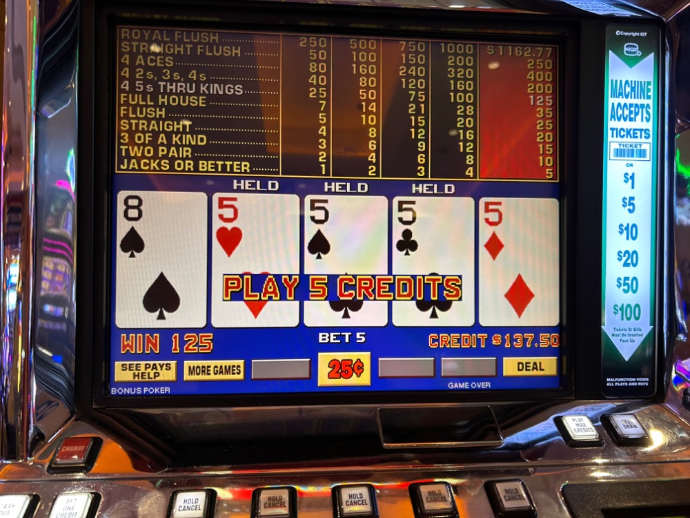 Thanks. Played more keno this trip. Keno can be like video poker, up and down. We have not hit any rain yet on this trip and Friday Aug 25 was first cloudy day. We are also out of the hot muggy days now so much more comfortable.