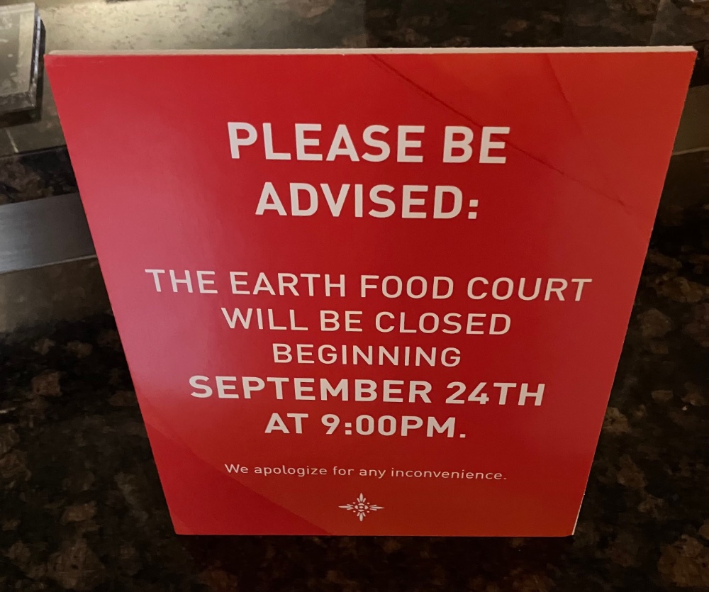 We used to have two pretty decent food courts. Now we have lost the second one. Bummer !! People are complaining like crazy just in case management is reading this. So now, instead of players taking a quick break and getting right back to playing, the casino is losing a couple of hours of playing time if players go into a restaurant, they will head over to Foxwoods, go to a local spot less than a mile away, or just go home. Here is the sign that Bizarro just posted.