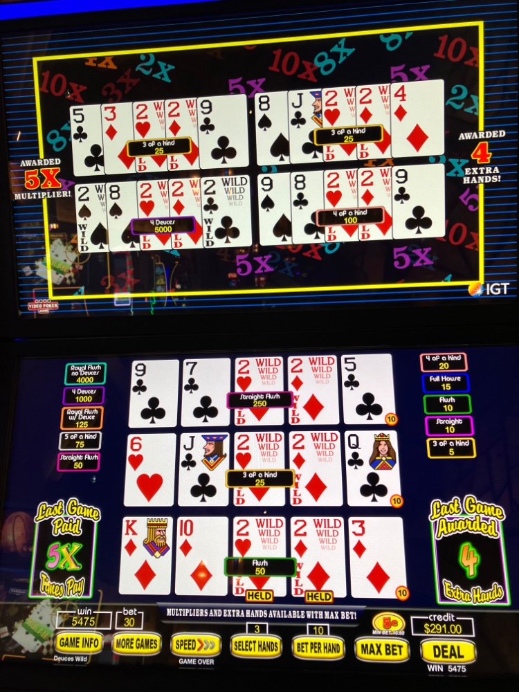 Then I looked at the awful paytable. Something told me to pop in just one 20 which I did. Look what popped up on the 2nd deal. Like a dummy, I then played it down to 200. Still it cut my trip losses in half. One just never knows what is around the next corner in this crazy game we play. Welcome to Bizarro World!!
