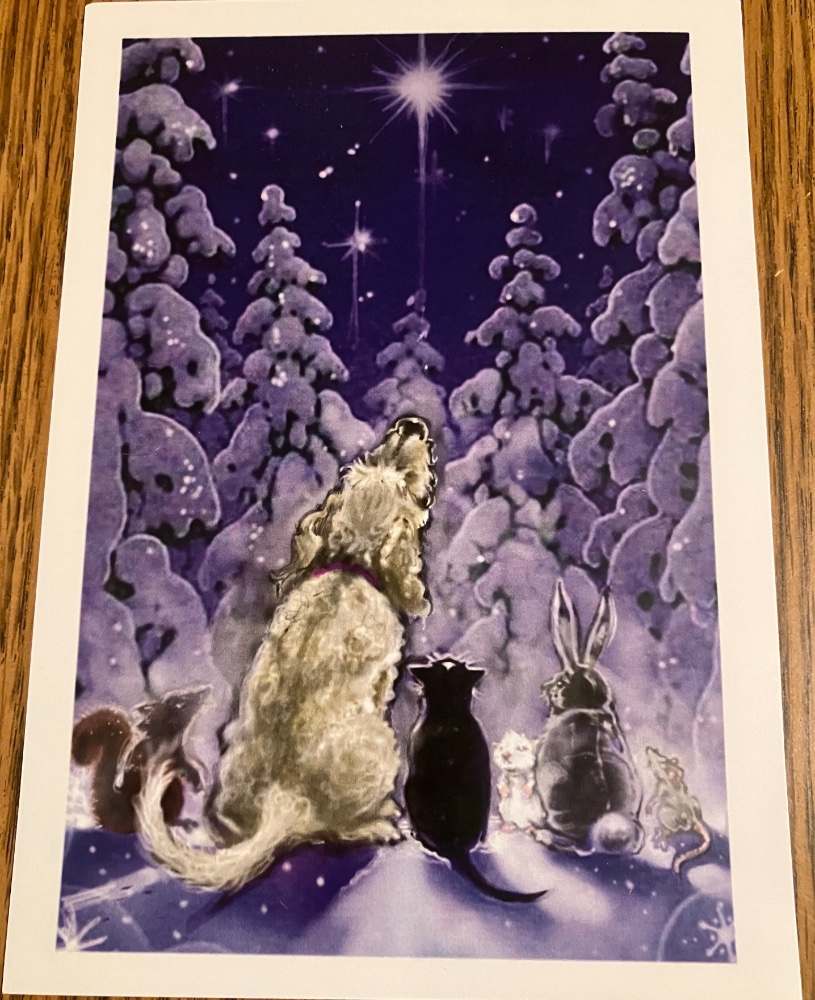 Same to everyone and thanks for starting the thread CBK. My brother in law is a retired artist He drew this Christmas card that just came today. Wow! The dog and cat are theirs. Unfortunately, they just lost Ginger the dog a few weeks ago. She is in a few of my posts probably either in the cartoon section or pretty stuff thread.