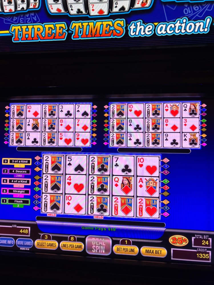 Strictly single line DDB (rare dip into TDB).olds442jetaway wrote: ↑Sun Feb 18, 2024 8:49 amI am still trying to get a handle on single vs multi line machines. I think the right balance might be 3 lines, but even then when things are ice cold, you lose almost 3 times as fast. When you have a bunch of lines like 10, and your bet is 10 times your single line bet, your one good hit unless it’s dealt is very much diluted. Anyone feel free to chime in with their thoughts on single line vs multi line. I only have one lifetime great hit in multi line, but it was a big one for 18k back in 2016. I think for tonight, my max will be 3 lines. I will probably begin with one line and see how it goes. Also on JOB,, I can only get 9/6 on single line. All thoughts and figures welcome on this issue. If I remember correctly, Ted and OMT prefer multi line. FAA single line. Also LL multi. Not sure about the rest of the gang.