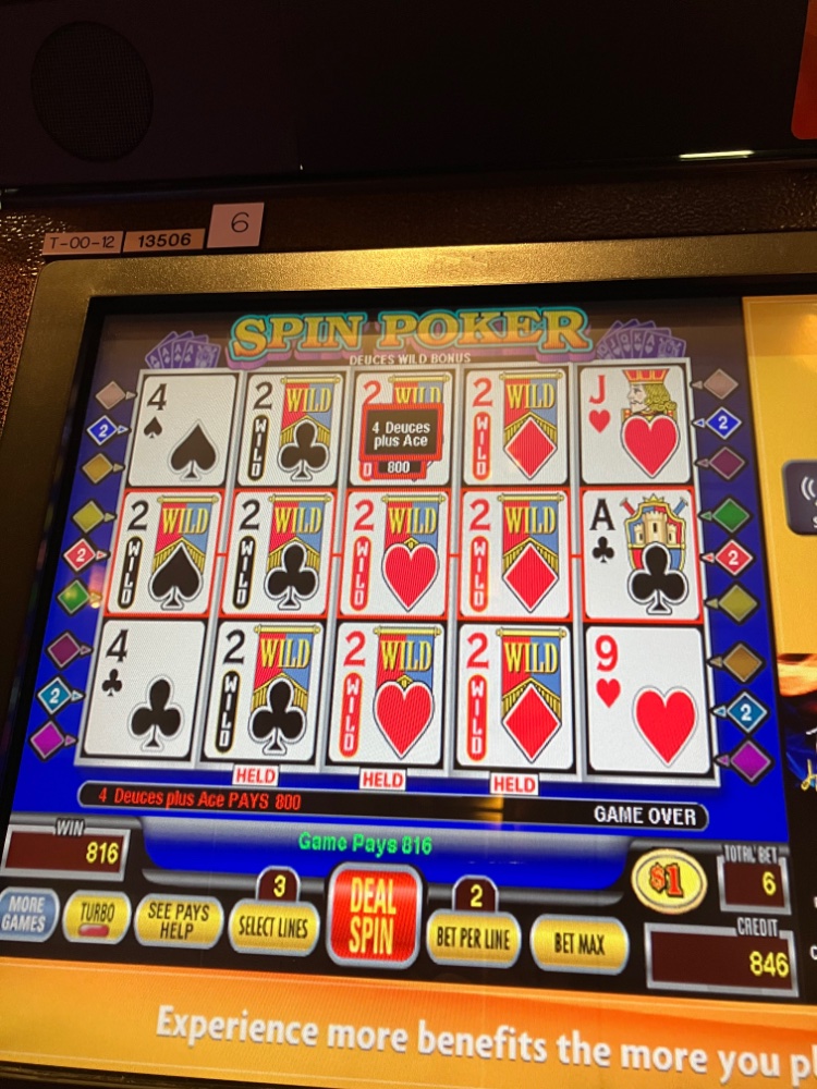 The bet was two per line.TripleTriple wrote: ↑Fri Mar 08, 2024 5:21 pmWhy does it seem like 800 for 4 deuces with Ace is a low payout? I mean that's 5 of a kind which in poker beats a RF. I know it's not 4 aces and a joker, but still... Guess I'm used to 2000 for that hand.