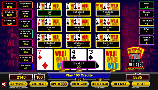 • The feature on Wild! Wild! Wild! Poker triggers much more frequently than Magic Deal Poker, around 50% of the time in Wild! Wild! Wild! Poker vs 9% of the time in Magic Deal Poker