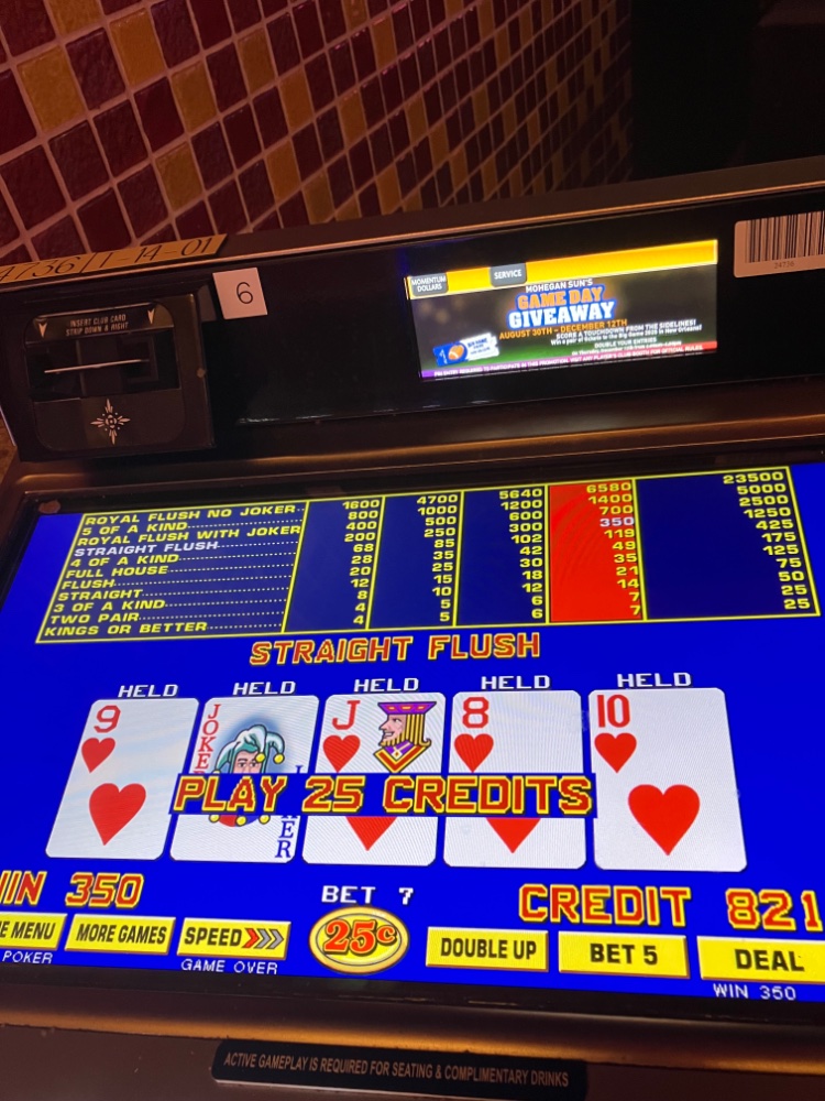 We played about 7 hours then headed home. The Mrs usual game DDB Ultimate X nickels was a struggle for her, knowing ahead of time that unless a Royal would appear, the session would be a loser without a couple of good hits with multipliers. That finally came through for her enough to break even. Pics tomorrow.