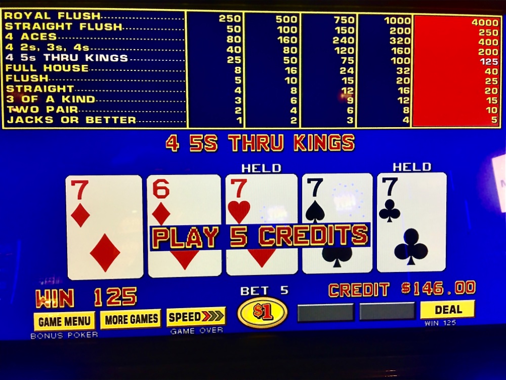 Sorry Saturday. I won $27 on my $30 Resorts BP FP. Returned plus $80 before my max quad. Jitney to Harrah’s. A small early quad, followed by a medium premium quad an hour later. But I stayed another hour, for a $430 loss. Net Day: -$490. 450 TCs.
