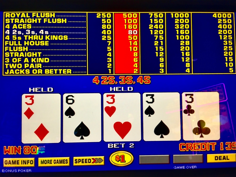 Scuffling Saturday. I won $15 on my $30 Resorts dollar FP. I soon hit a medium quad and left +$96. Train jitney, McD lunch. Twenty minute jitney wait to Harrah’s. Will revert to other method. I hoped to be greeted with two early quads again, but they took two hours. My medium premium quad took forty minutes. My max vanilla quad took another seventy and cost $52. I yelled, “About…time!” Net Day: -$75. 280 TCs.