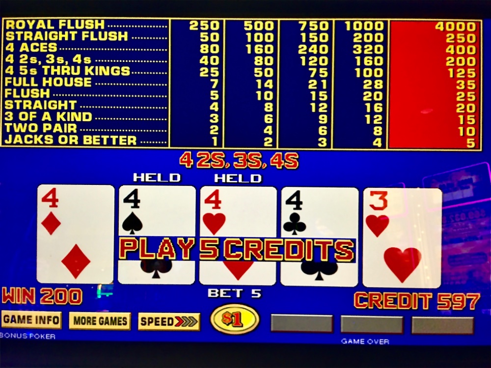 Ditto. One way to get a 4k Royal. Last year, I played my wife’s FP ( 10 bucks ) for her on a quarter 9/6 machine. About the 4 th deal, I got a 1k Royal for her. Just like Dire Straits……Money for Nothin……