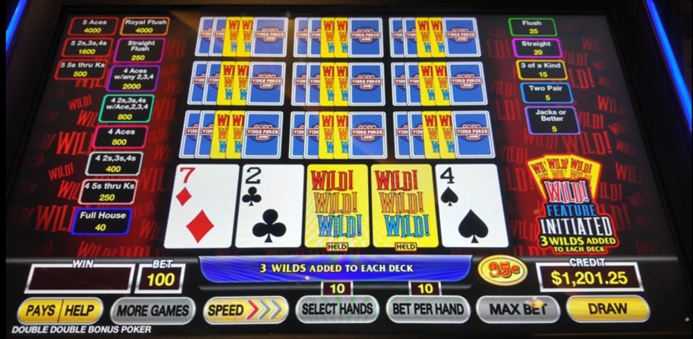 I didn't want to start a new thread, but while watching a recent video, I saw this interesting hand and I was curious as to the proper play here. In the picture, the player is awarded 3 WILDS, 2 of which he gets on the deal along with the 7