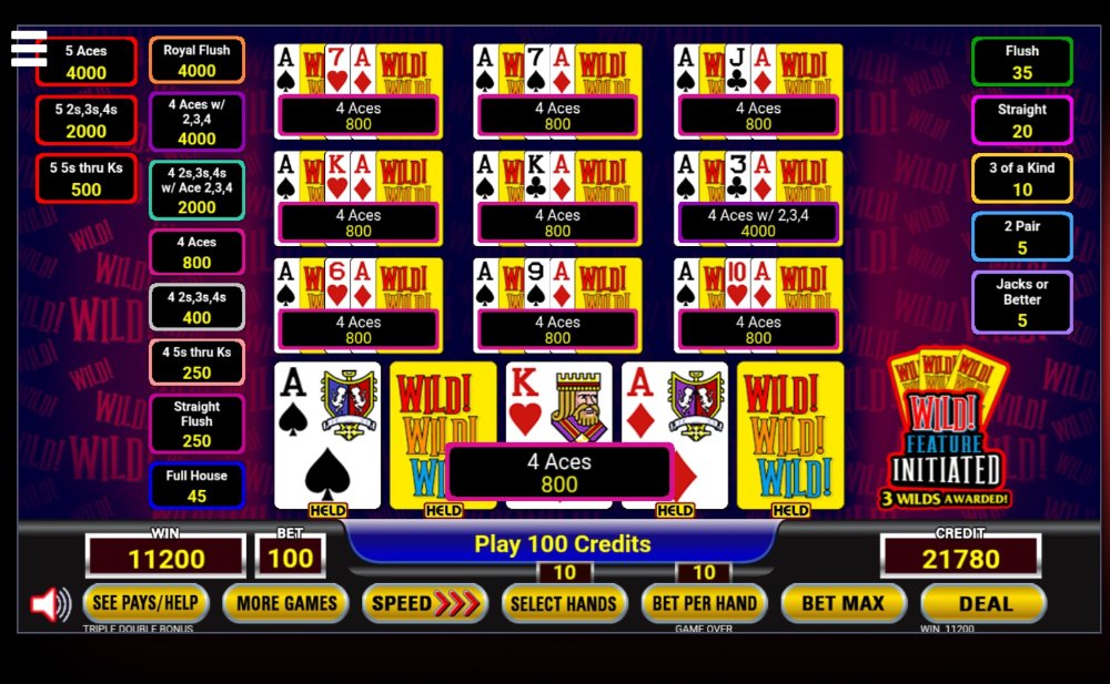 I played fifty bucks on a whim at ten cent triple play, or three bucks a hand. Wild!Wild!Wild! flirted with me but a succession of no-Wild! hands quickly had me ejecting my residual tito. I would prefer single line at higher denominations, with better pay tables of course. Good luck.