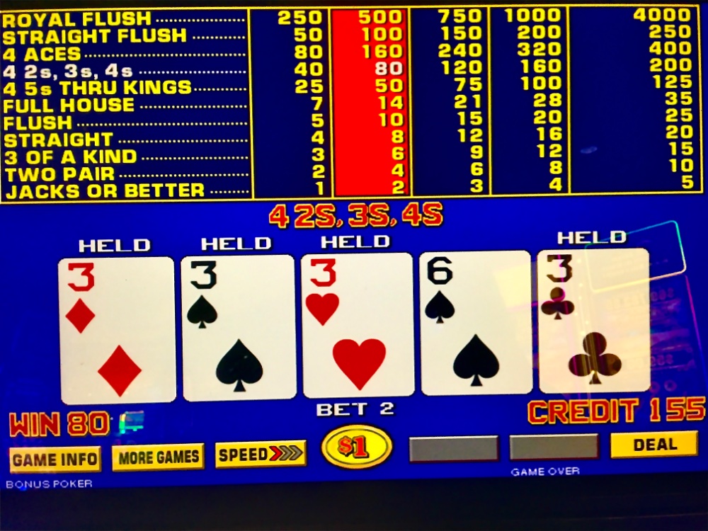 Sad Saturday. I won $8 on my $15 Resorts BP FP. I soon hit a small quad; too frustrated to photograph. I gave it back plus $75. Jitney to Harrah’s. A medium premium quad, many but a -$300 over two hours overall. Surrounded by VP jackpots. Back at Resorts, a large quad. Net Day: -$430. 220 TCs before 5X. Platinum.