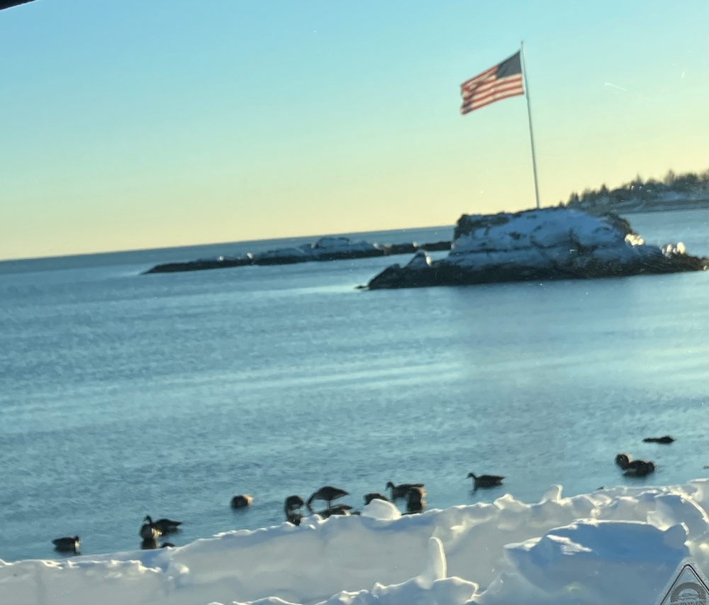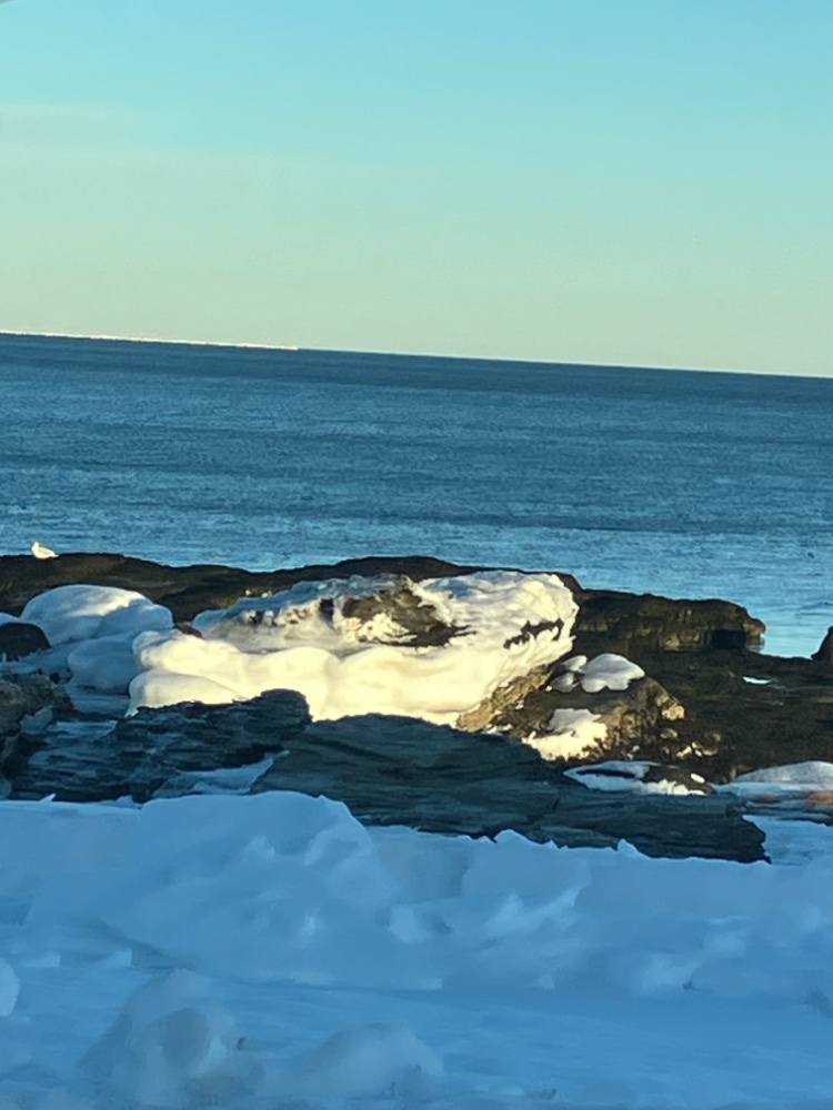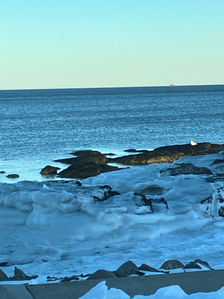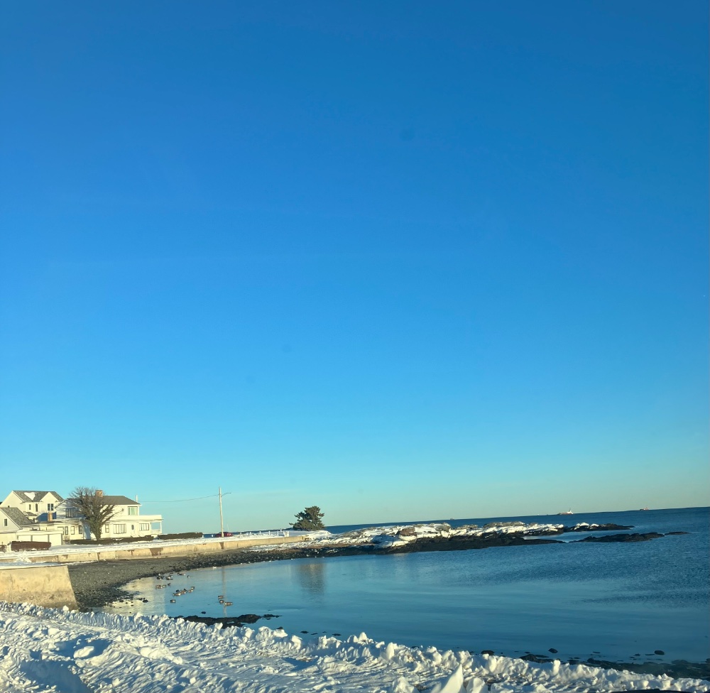 Just down the street today! The rock we call Potato Rock has an ice ring around it from the prior high tide.