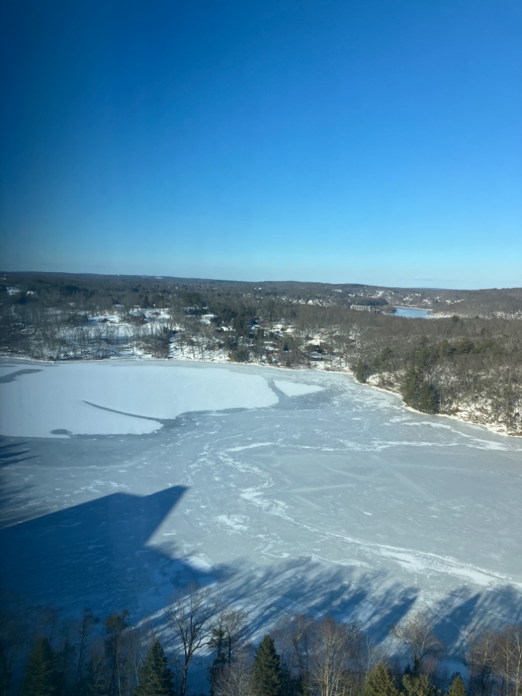 View from the hotel. The Thames river is almost completely frozen over except for the part where the swift current is. I get cold just looking at it. The bottom picture is just a dark shadow from the hotel. The inlet is frozen.