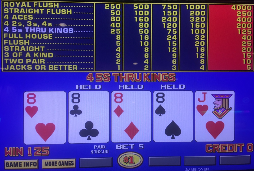 Superb Saturday. I lost my $25 Caesars table FP on eight to craps. I played only my $25 FP on quarter and cashed out at $50. I bought a clearance $6 Sony mini speaker at mall and browsed. I returned for dollar BP. I quickly hit a max quad fours. To die four! I watched Man City-Chelsea at Book, as national MLB in a rain delay. Wingcraft lunch. I returned to chase the quarter Progressive, at $1,034. I sat down as lady left. She doubled back for her cane, hooked on back, and shuffled off. I then realized that she had just hit RF! It reset; I was crestfallen. Well, it’ll be there next time. Happy to be 20% as lucky. Net Day: +$220. 6 TCs.