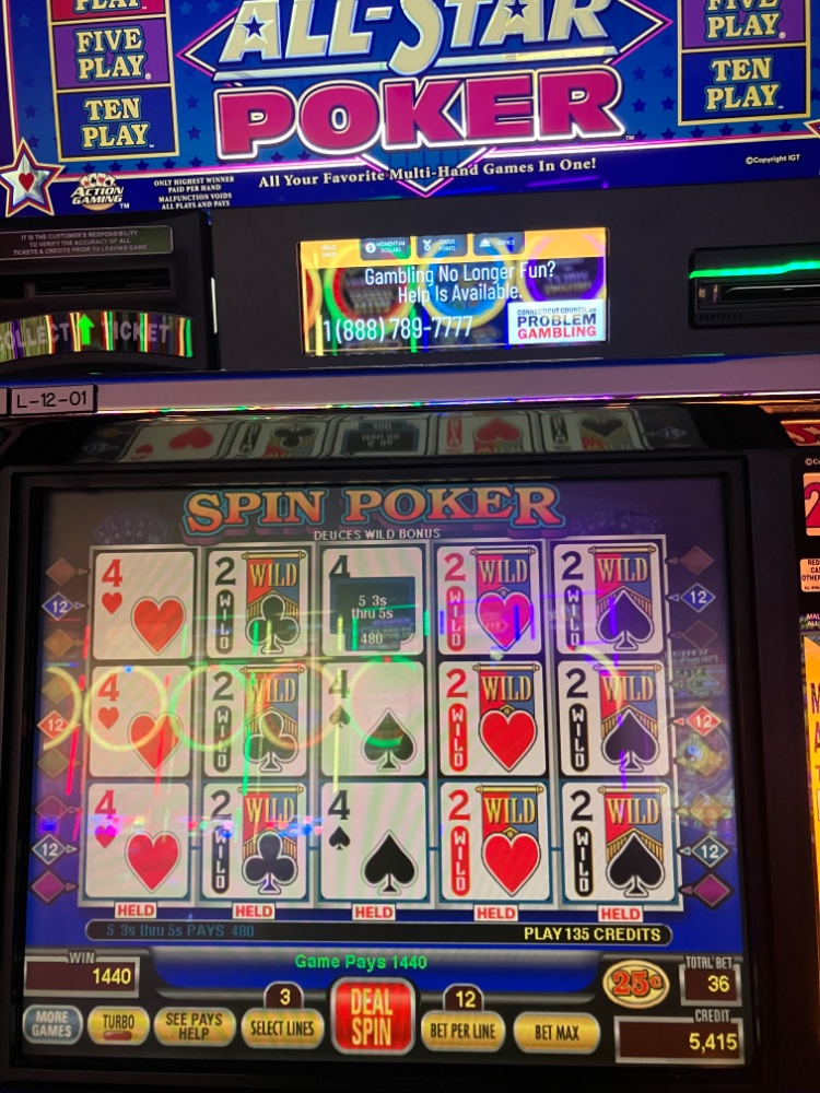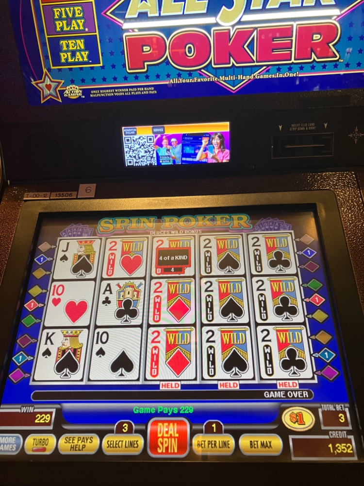The Mrs and I had a nice overnight trip at Bizarro. Everything comped and the casino actually was kind to us in our VP play, though my session was a longer Marathon than the Mrs. She had one nice hit and quit a hundred bucks or so ahead. I did my usual Marathon and was eventually rewarded while playing the Clone on bonus deuces wild. ( both dollar and quarter play ) I saved my JOB play for another trip. Pics attached. There were a few other good ones too. No hand pay jackpots. No problem.