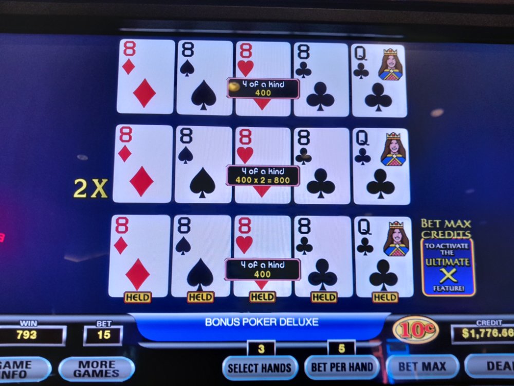 That would be such a major mess-up on their part if they allowed 5 coins on that paytable lol. I'd just sit there until I couldn't stay awake playing itdavidearl wrote: ↑Sun Jan 29, 2023 2:46 pmSorry about your MISTAKE, J.Jstark wrote: ↑Mon Dec 05, 2022 8:46 amThis has been discussed a few times, but every once in a while on Dream Card Poker, when dealt a DC, it'll sometimes give you a DC that is not the best option. In my case last night while clowning around a bit at Firekeepers, I was dealt Qd, 5s, 4d, Kd, and Ad as the DC. This is on the 10/8/6/3 JoB version which is 97.3340% return according to WoO. Mike on his DC page shows another poor DC example but uses a lower pay table. In any case, the best DC here should either be another Queen, King, or the Jack of Diamonds. Being that the FH pays 50 credits and the flush 40 credits, I'm guessing I should have changed the DC to a King or a Queen. Also with the Flush paying 40, would it have been correct to just hold 4 to a flush over KQJ suited? Anyway, that didn't even cross my mind at the time but knew damn well that changing that DC Ace of Diamonds to the Jack of Diamonds was much better as I could at least catch a Straight Flush. So that's what I did and lucked out with a royal on hand #8.